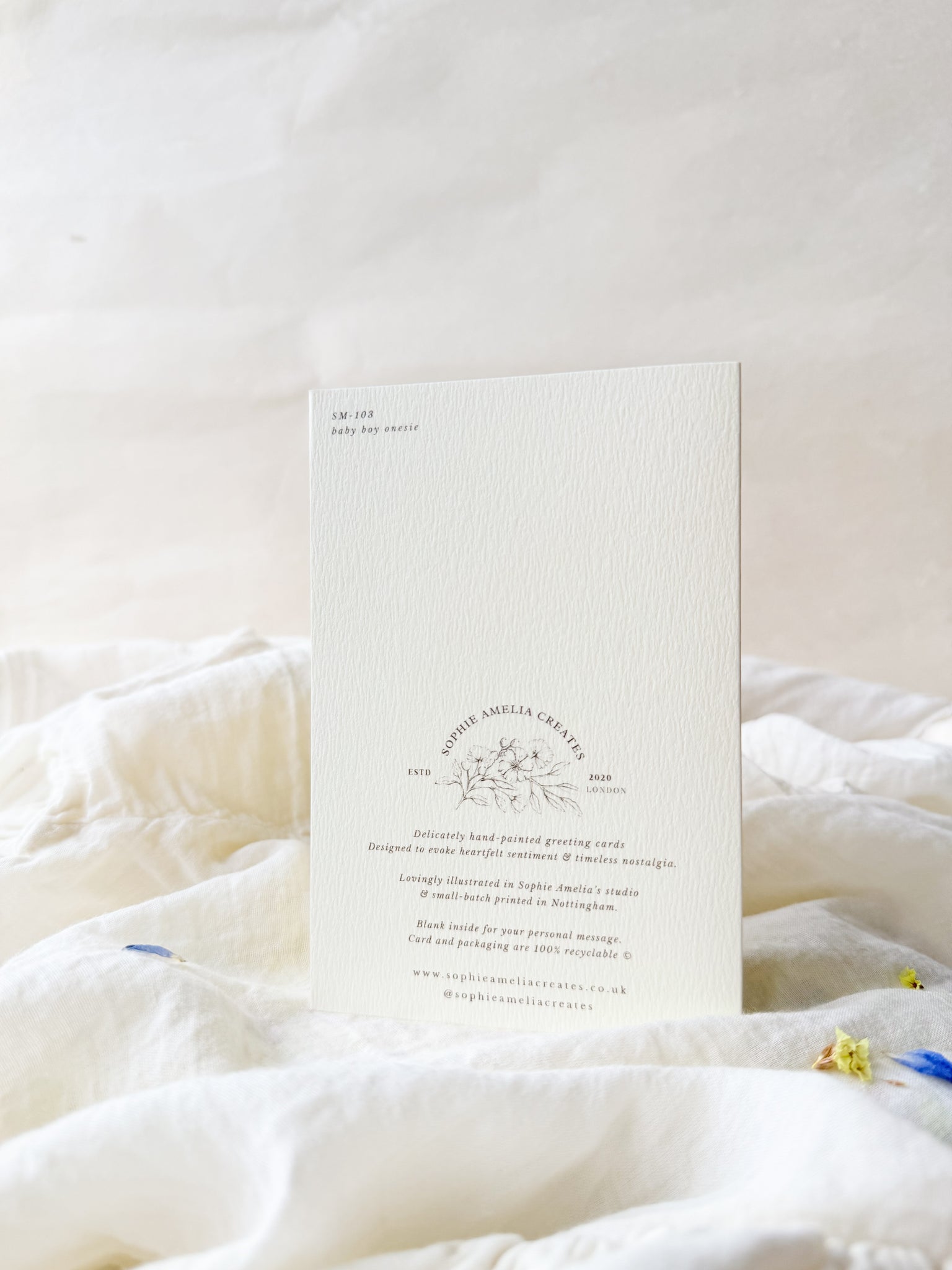 Chantilly white envelope included, packaged in a recyclable cello bag.